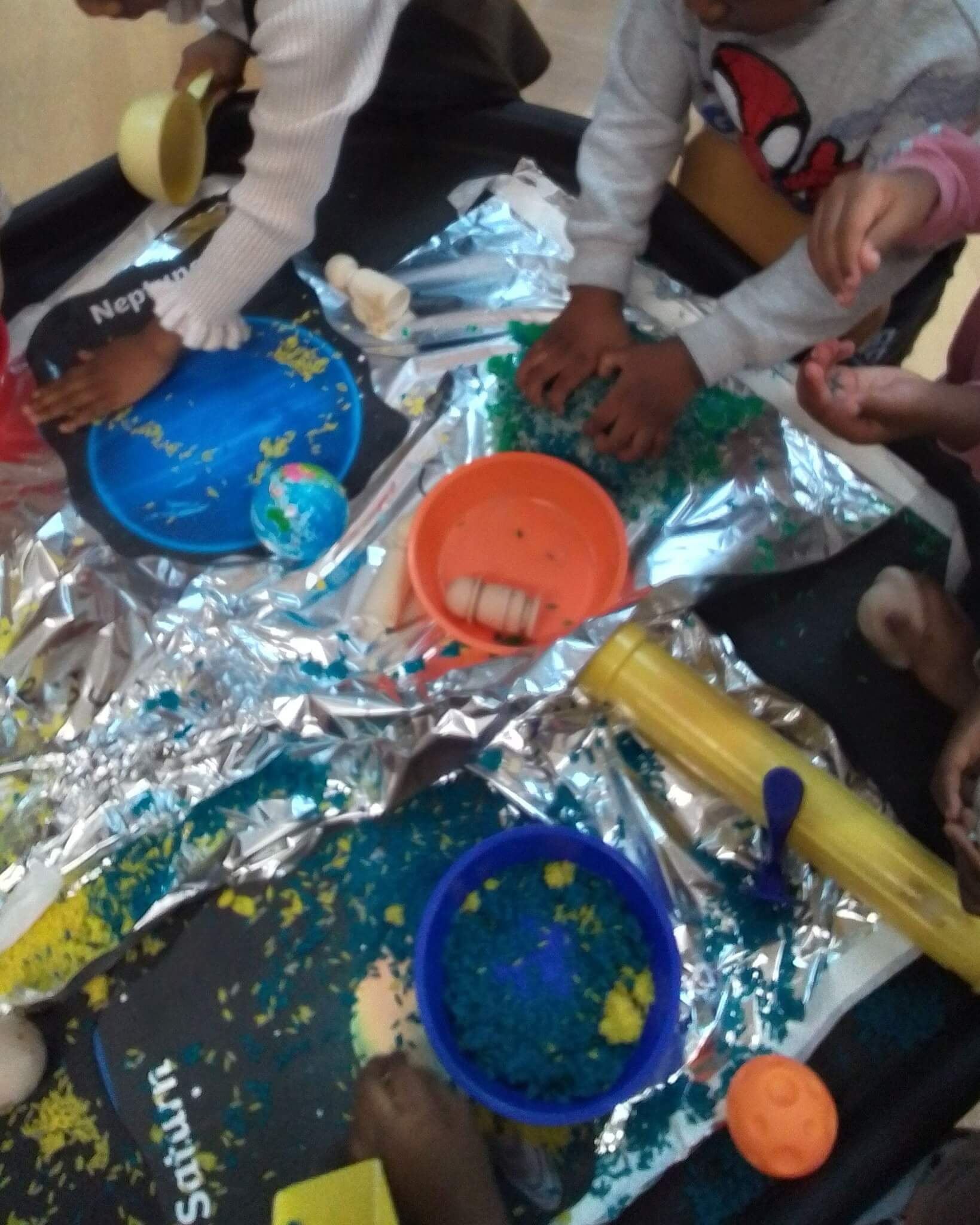 The children in the Sunflower Room at Chestnut Nursery School Gascoigne have been taking part in a range of different activities, exploring space, building in the garden and making emotion faces from playdough.