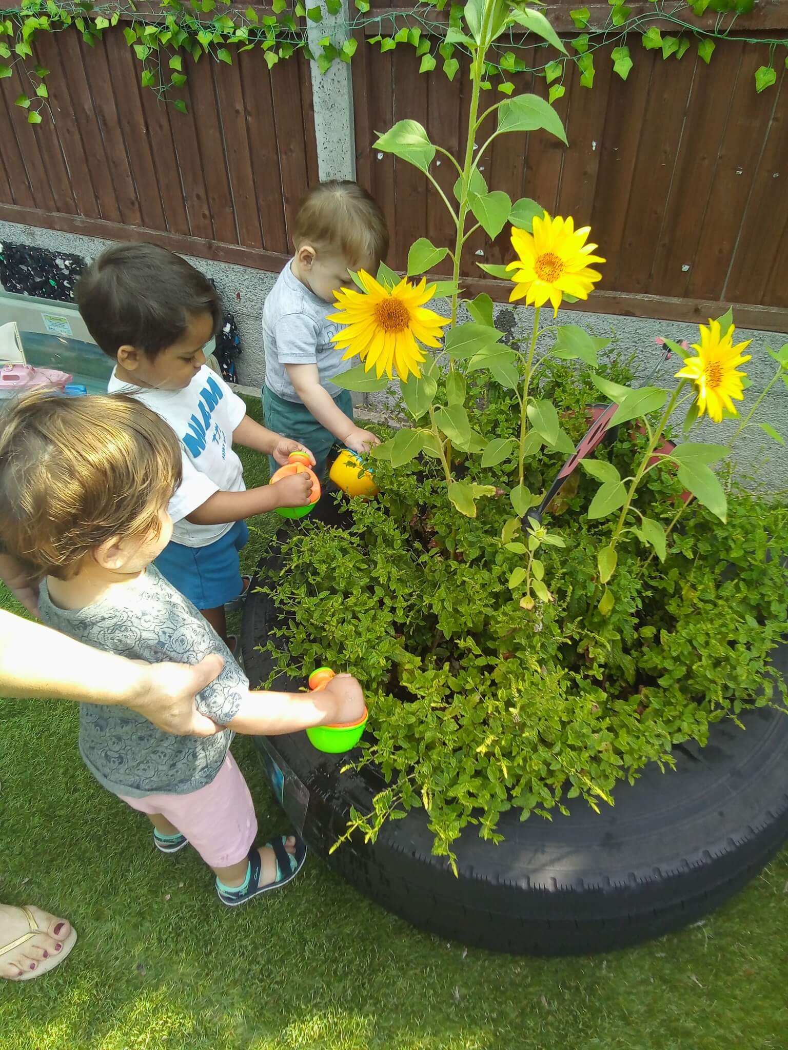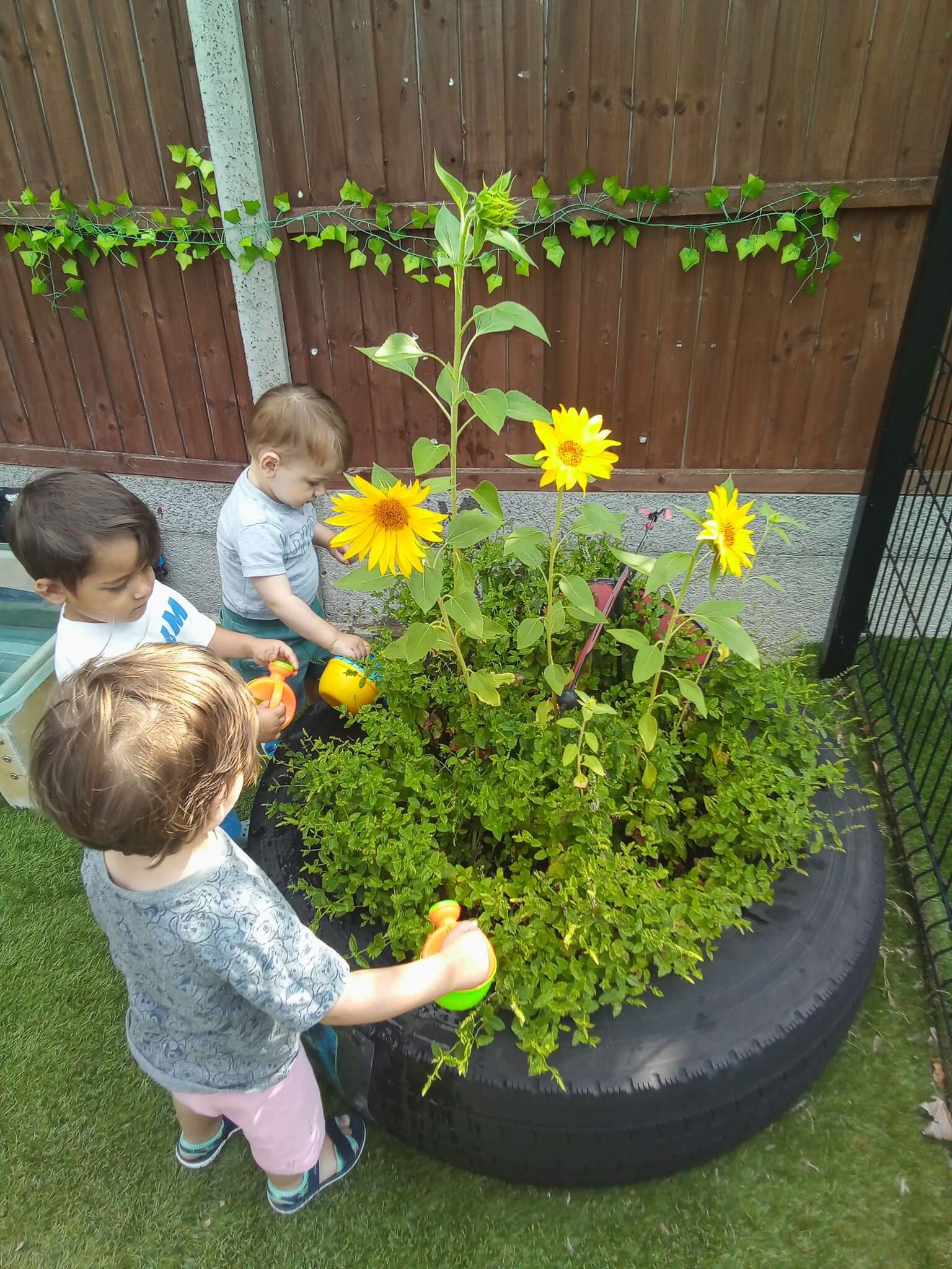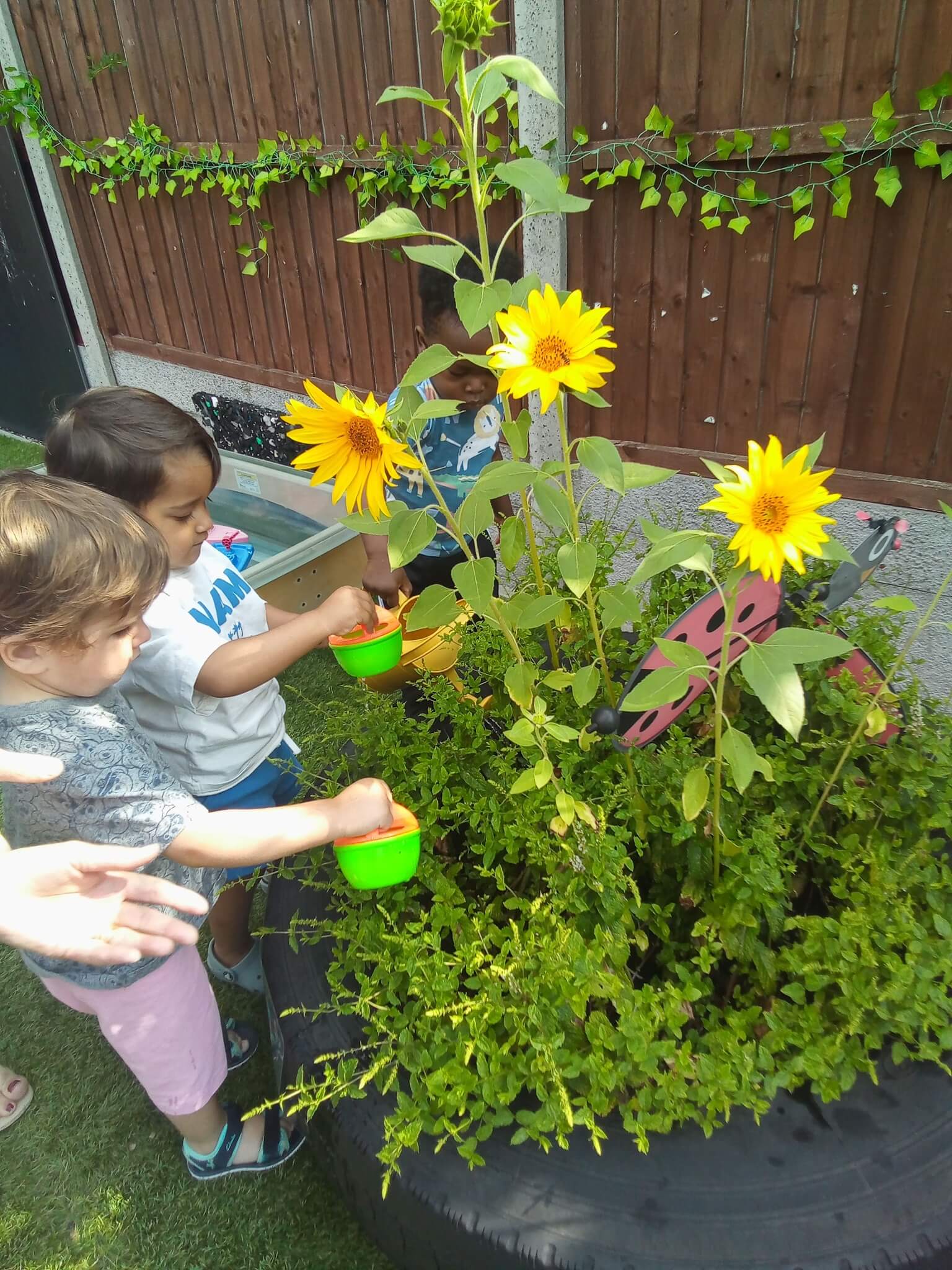 The Willow Room at Chestnut Nursery School The Maples have been exploring the lifecycle of plants through planting sunflower seeds and helping to water them as they grow. Throughout the growth process, the children have been learning keywords such as “sunflower”, “soil”, “yellow” and “grow”.