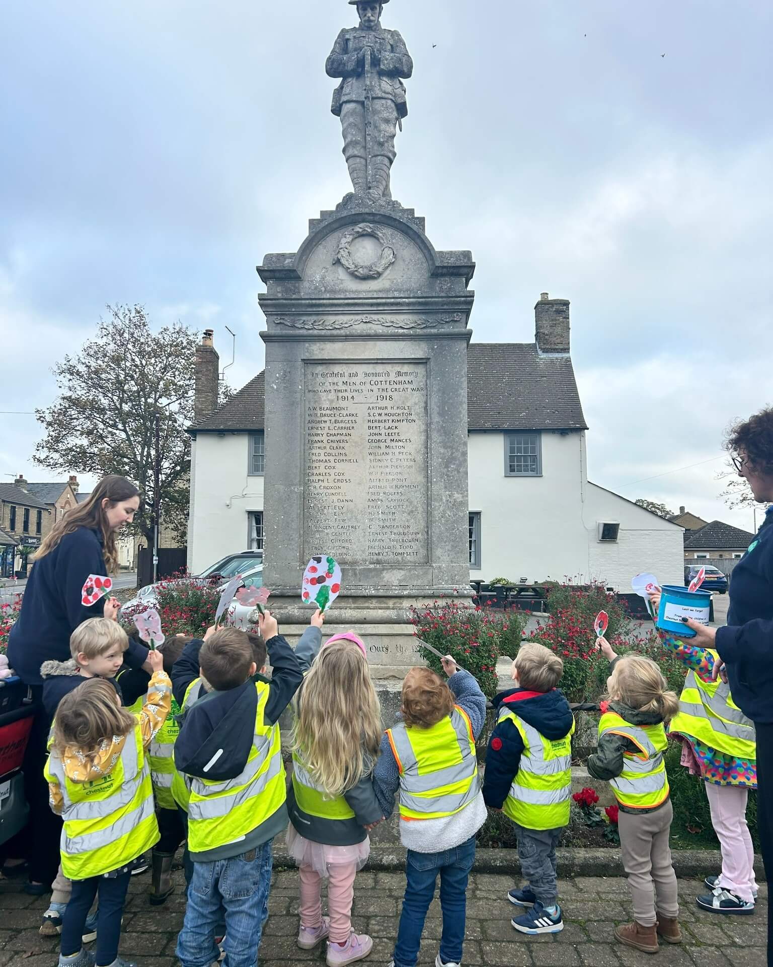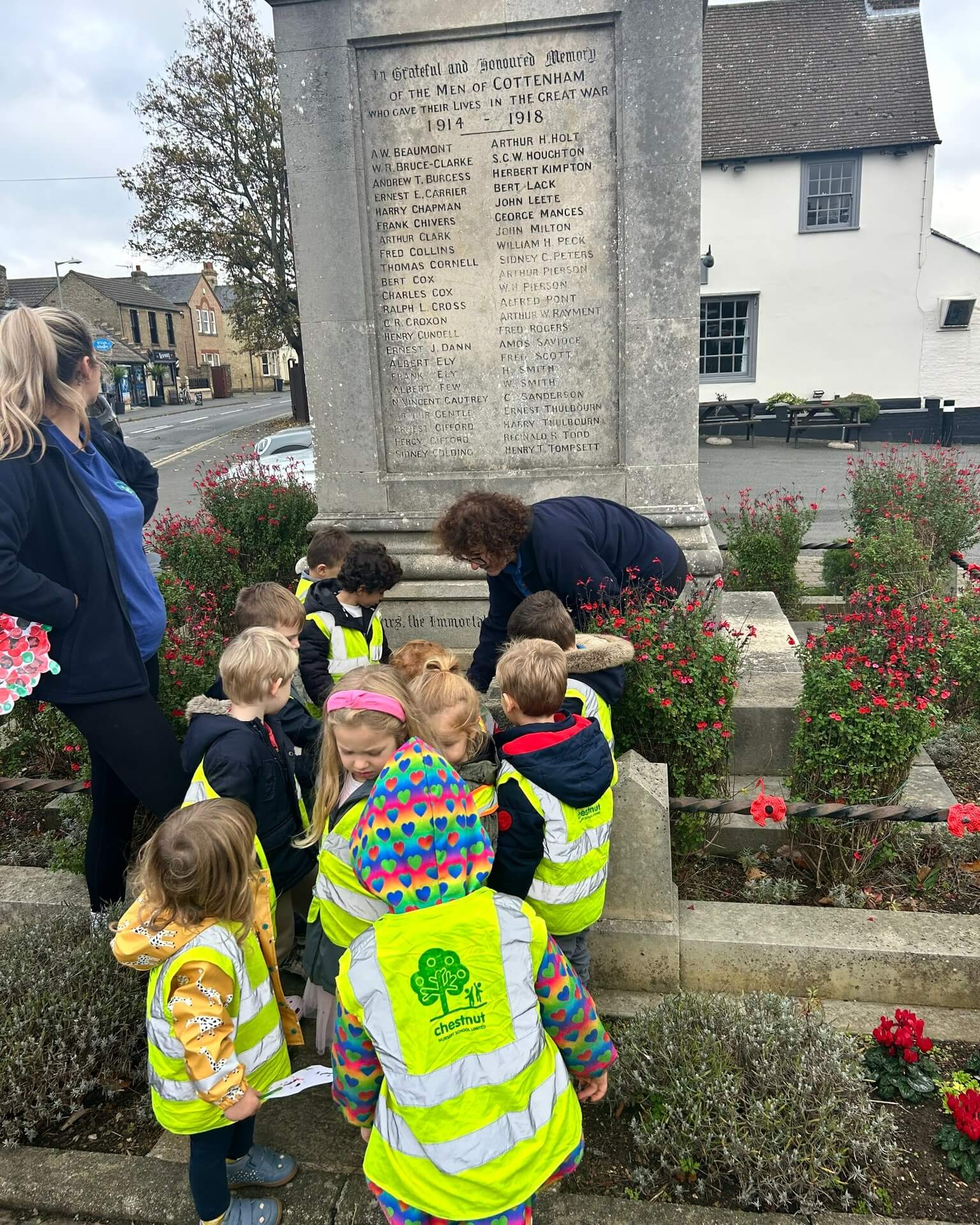 The children at Chestnut Nursery School Cottenham took a walk into the village to lay their remembrance poppies on the war memorial. We spoke to the children about remembering the brave soldiers and animals that gave their lives to protect their country. Today, we remember them all.