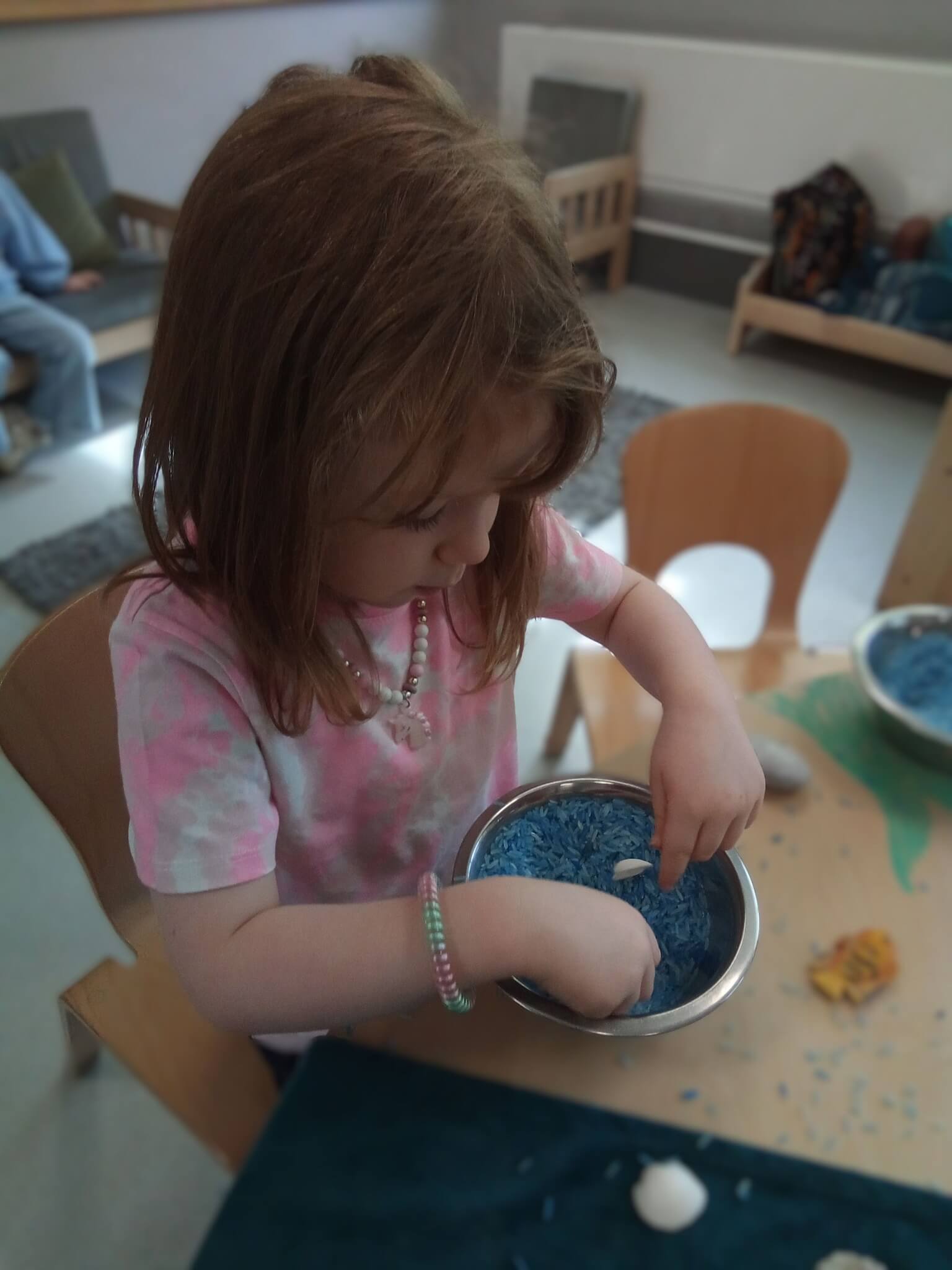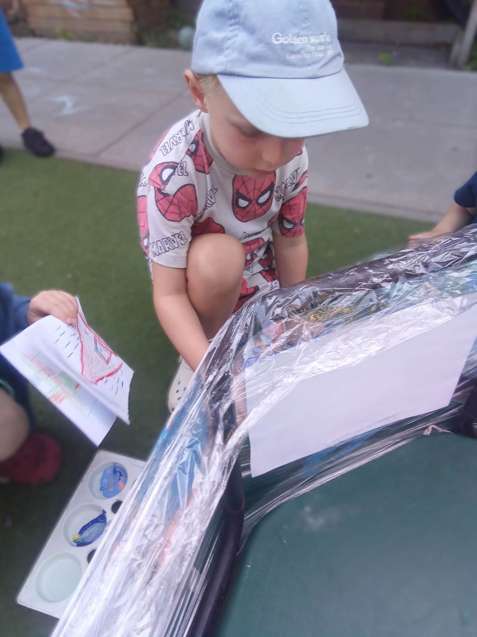 The children in the Pre-school Room at Chestnut Nursery School Sewell Park have been exploring activities based around our book of the moment 'Tiddler'. The children especially enjoyed creating their own aquarium, using a range of different materials and whilst creating the aquarium enjoyed talking about times they have visited the aquarium. The children have been looking at the different types of fish and creatures that live in the sea, talking about how the fish look whilst creating their own fish and sea creatures.
