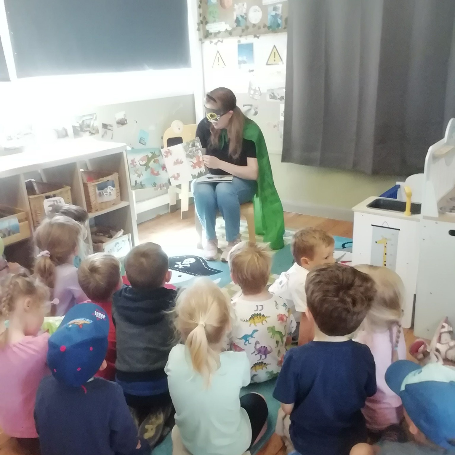 The children loved having our secret, masked reader come into nursery and read them not only 1 but 2 of their favourite stories – 'The Gruffalo' and 'The Tiger Who Came to Tea'.