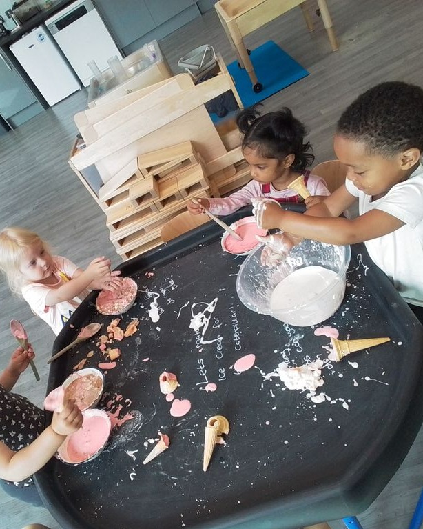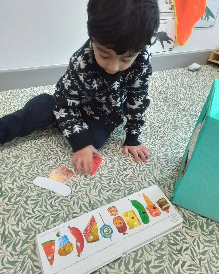 At Chestnut Nursery School Greatfields, the Wren and Robin Room children have been enjoying their current book of the moment - ‘The Very Hungry Caterpillar’. The children have taken part in a variety of activities to bring the story to life, such as fruit tasting, making ‘ice cream’ for the caterpillar, which was corn flour, scented to smell like chocolate, strawberry and vanilla with ice cream cones, the children loved talking about what flavour ice cream is their favourite!