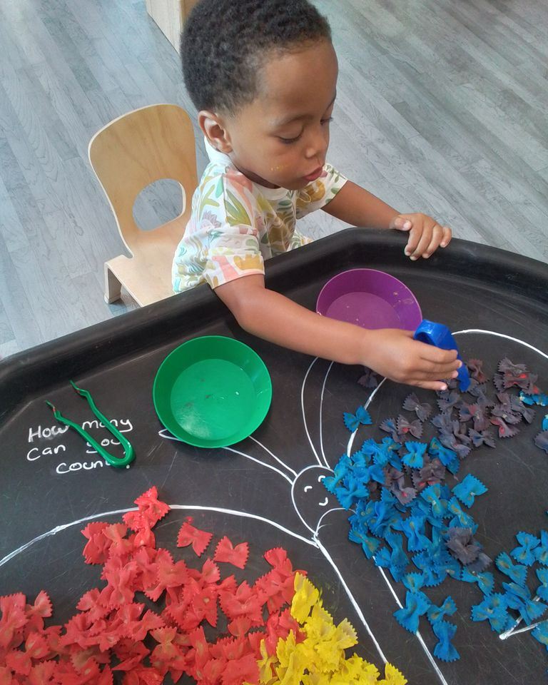 There was also messy play with props for the story to enable the children to act out the story how they remember it, and a butterfly colour sorting activity using tongs to pick up the pasta practicing our fine motor skills. The children were mini artists as they created lots of artwork based around the story. They have really enjoyed this story, learning all about the life cycle of caterpillars, to extend their interest we got some real-life caterpillars and are currently watching how they progress into each part of the life cycle!